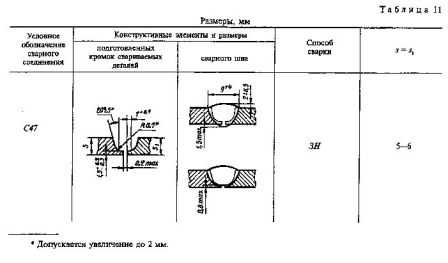 5. При изготовлении тройников и крестовин из труб должны применяться типы сварных соединений, установленные для отростков с трубами, а при сварке тройников, крестовин и переходов с трубами или фланцами — соответственно типы сварных соединений труб с трубами или труб с фланцами.