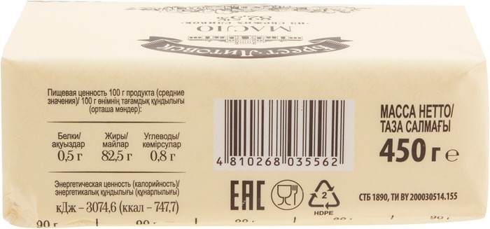 С маслом натуральным жирностью не более 85%, 1.600кг, маркировка 501-03643802