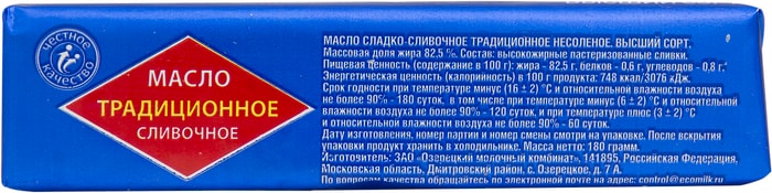 Сам продукт под названием сливочное масло, будь то масло крестьянское 72.5%, масло традиционное 82.5% и так далее — это высокопитательная продукция, содержащая водо- и жирорастворимые витамины.