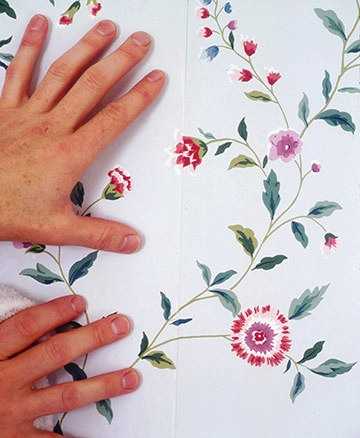 Если стену прокрасить в тон полотна, то слегка разошедшийся стык не будет заметенОсобенности поклейки обоев встык