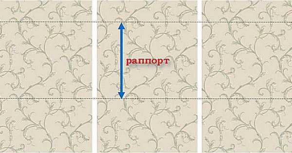 При нарезке важно учитывать размер раппорта – высоту рисунка, повторяющегося на обоях.