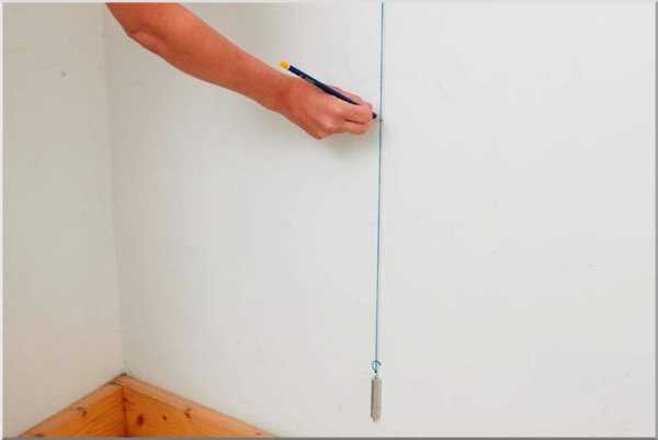 Вертикальная линия может быть выстроена при помощи изготовленного самостоятельно обычного механического отвеса