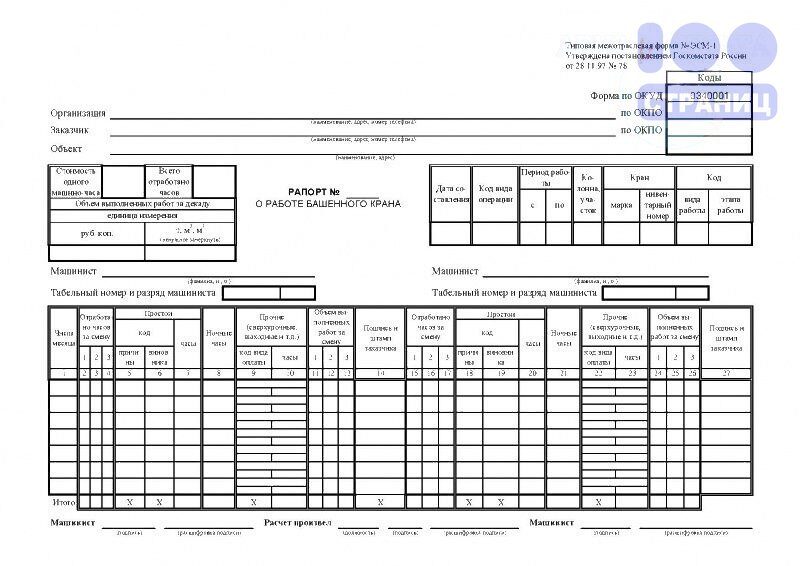 Путевой лист для автокрана является первичным документом, служащим для учета работы шофера-крановщика, и основанием для списания расходов на ГСМ.