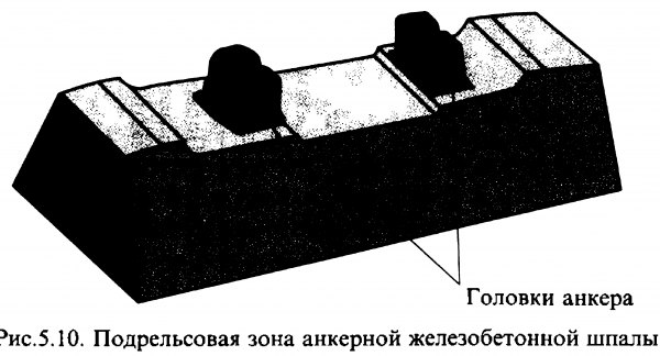 Рельс опирается на рифленую резиновую прокладку 130 130 мм, при этом канавки расположены параллельно ось рельса. Крепления для рельса 52 кг — Pandrol. зажимы, которые удерживаются во вставках из ковкого чугуна, как показано на рис. 7.12.