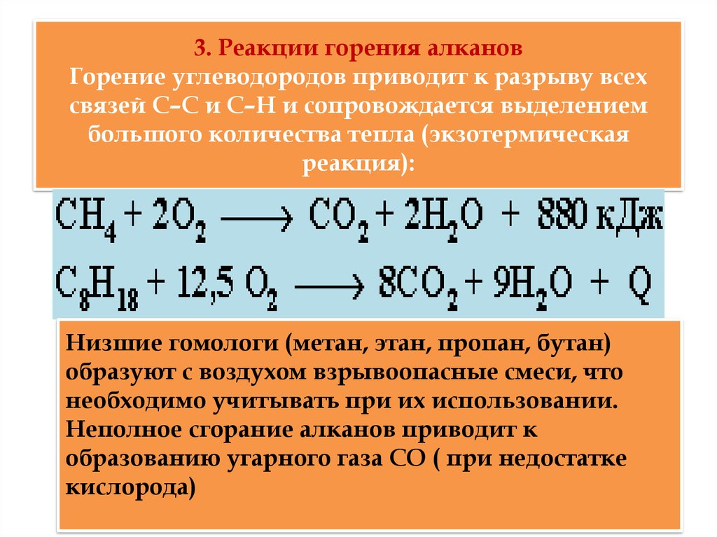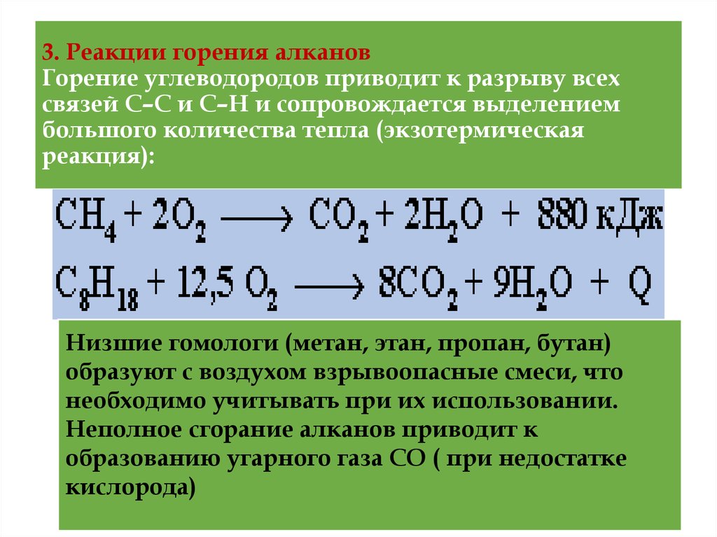 Тогда, в частном случае, при сгорании метана в кислороде, можно записать: