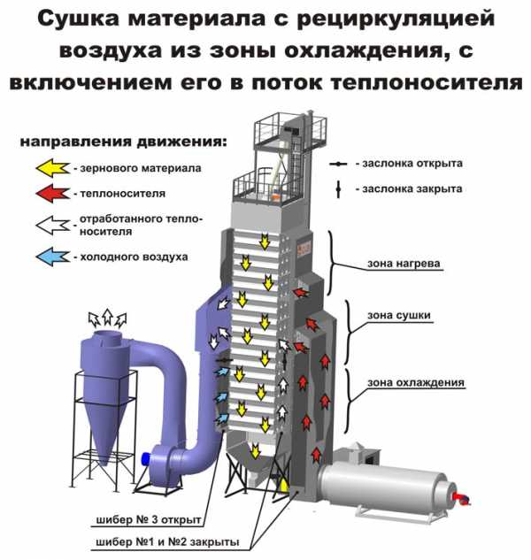 · Одна из технологических схем работы аэродинамической цепи зерносушилки предусматривает рециркуляцию отработанного теплоносителя.