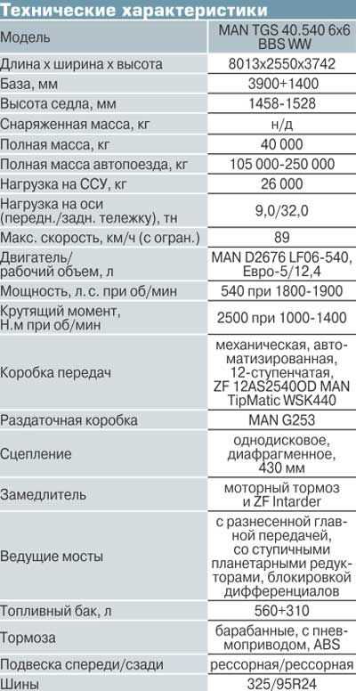 Основные характеристики техники — седельных тягачей МАН (тягач MAN):