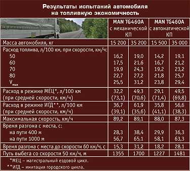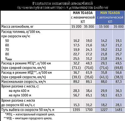 У специалистов бытует мнение, что автомобиль с механической КП более экономичен по расходу топлива, чем автомобиль с автоматической КП. Практика показывает, что в большинстве случаев так оно и есть, но не в данном примере. В ходе испытаний двух немецких тягачей автомобиль с автоматической КП оказался экономичней тягача с механической КП в составе автопоезда, но только в состоянии снаряженной массы. С полной же массой расход топлива обоих автопоездов был почти одинаковый.