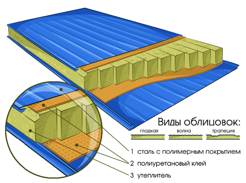 - Наполнитель — вспененный полистирол (EPS) или минеральная вата