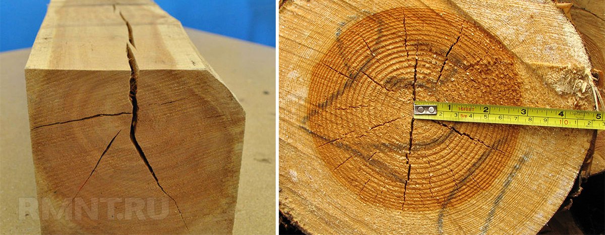 Просушенное дерево имеет большие трещины и легко разрубается, а при ударе издает глухой звук.