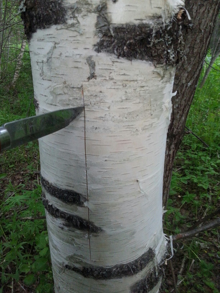 Береза - расколота сразу кора становится водостойкой и предотвращает высыхание, после этого 1 год