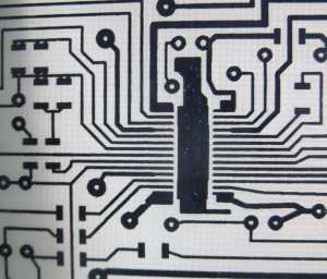 Так выглядят дорожки на протравленной плате по технологии ЛУТ. Межцентровое растояние 0,65