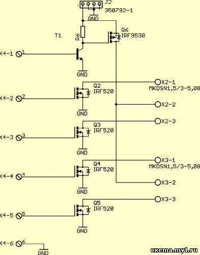 Все силовые цепи коммутируются через полевики Q2-Q5, ШИМ сигнал отдельно коммутирует + питания через полевик Q6. Кому ШИМ не нужен, можете его выкинуть.