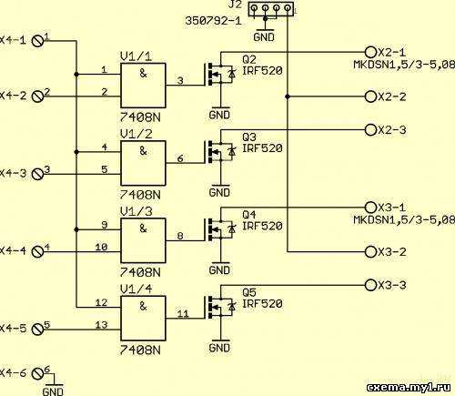 Здесь применены элементы лог. «И» для вывода ШИМ сигнала через полевики.