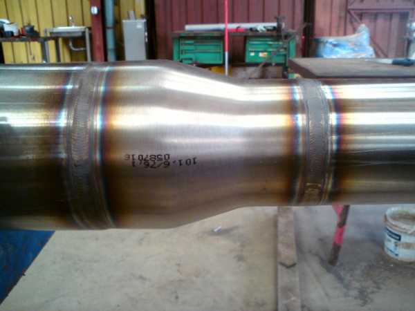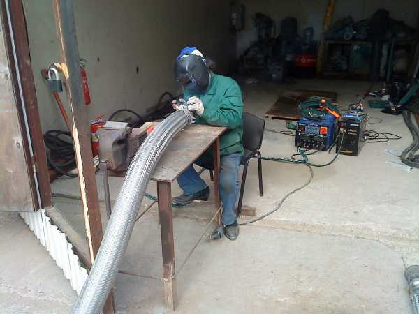 - Теперь снимается скотч или изолента со стыка и производится сварка двух труб из нержавеющей стали.