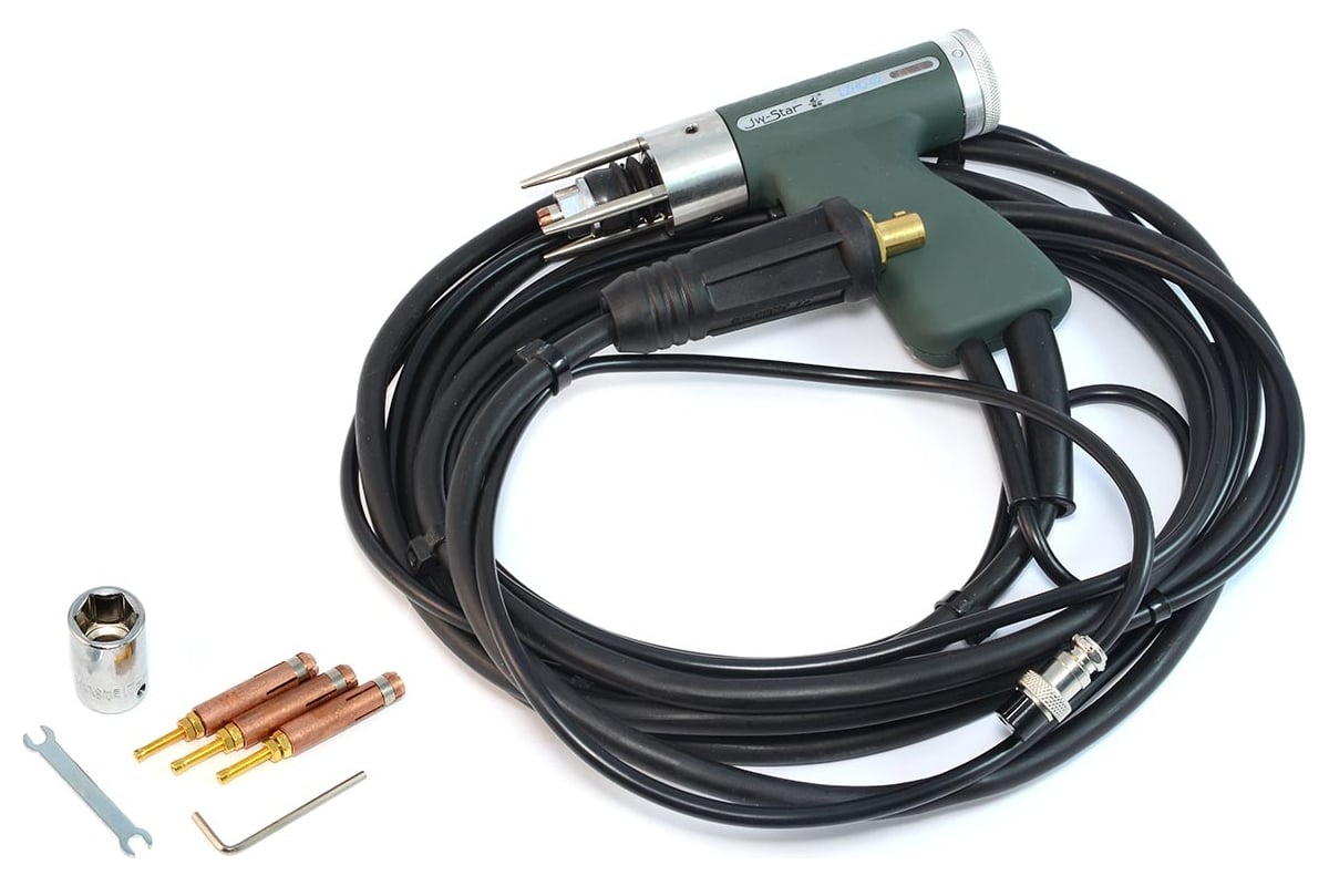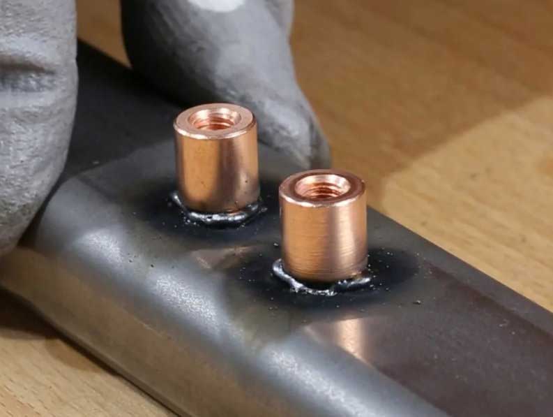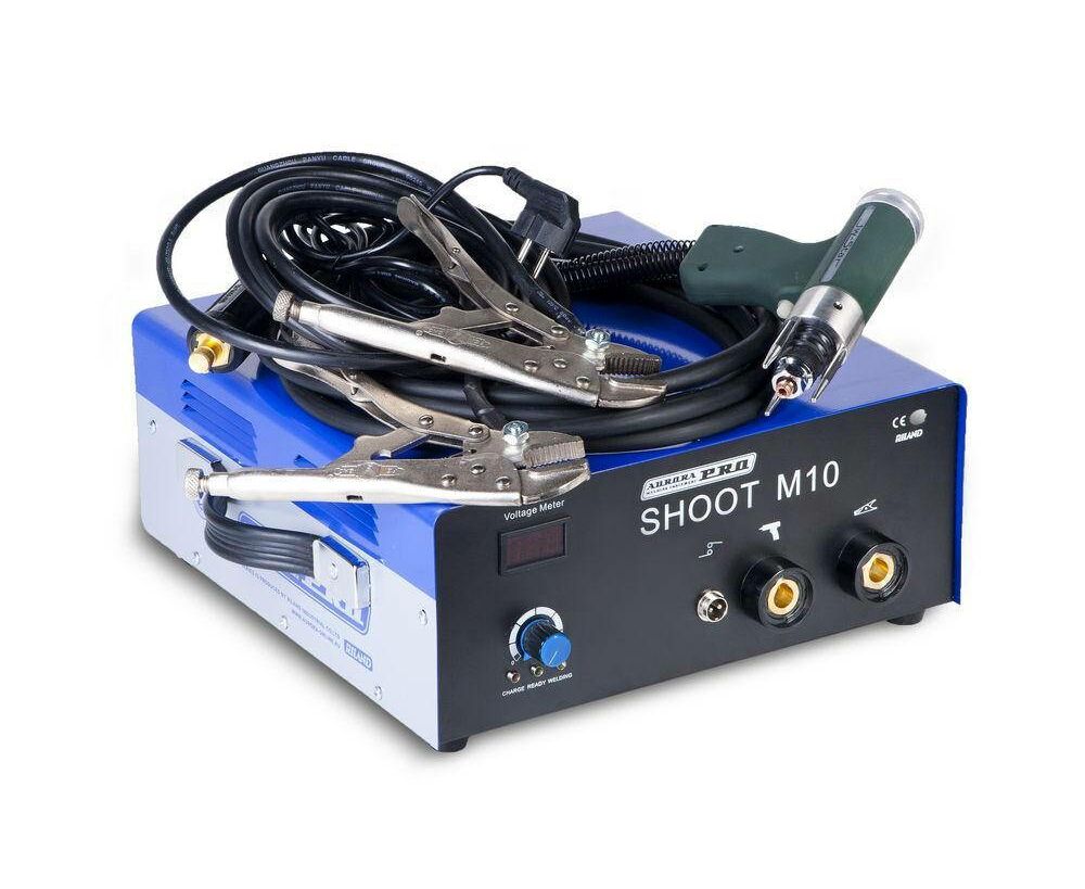 После включения питания загорается лампочка, которая в данном случае играет роль индикатора напряжения. Когда лампочка перестает гореть, это означает, что конденсаторная батарея полностью заряжена. После этого сварочный аппарат готов к работе. Включение разряда осуществляется нажатием на кнопку, встроенной в держатель. Такая сварка позволяет приваривать не только тонкие пластинки, но и шпильки разного диаметра к металлическим поверхностям. Для этого предусмотрена возможность удержания шпильки в держателе.