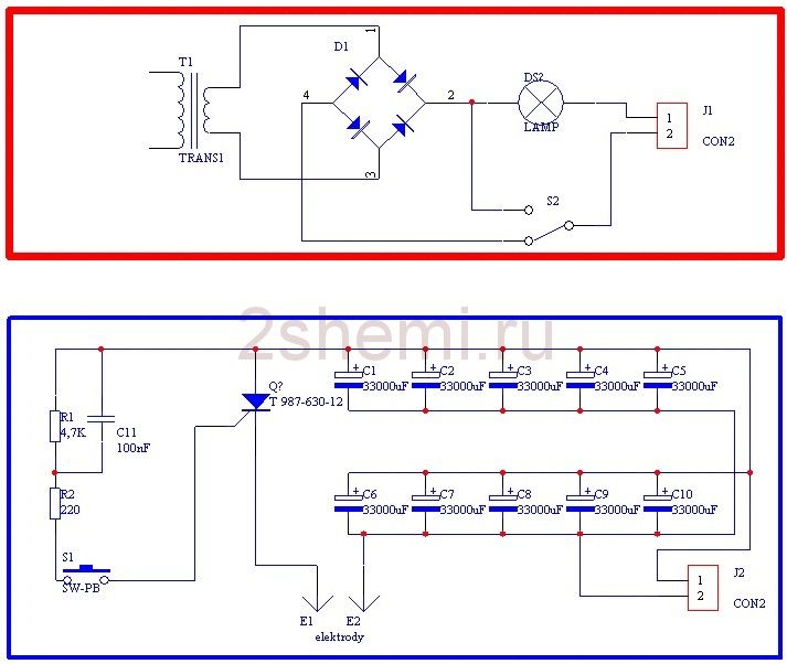 Но, во всяком случае, 40 вольт не смертельно. Поскольку аппарат планировался с питанием от сети нужно использовать понижающий трансформатор для зарядки конденсаторов.