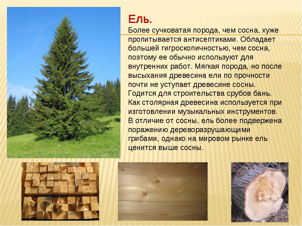 Из-за этого годичные кольца и сучки выделяются и выглядят эстетично. Этот вид делает его идеальным для изготовления мебели. Но сосна легко деформируется, из-за чего некоторые столяры считают ее древесиной более низкого качества. И сосну, и ель трудно окрашивать из-за их мелких пор.Преимущества и недостатки древесины ели