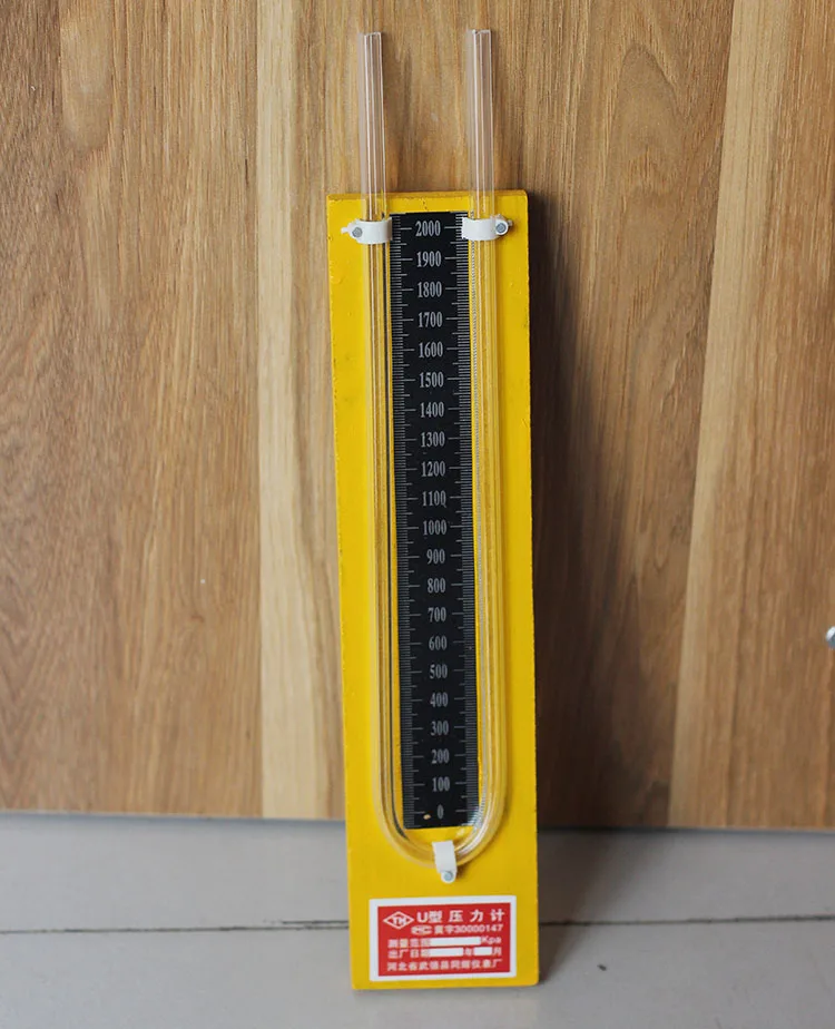 U-образный манометр является простейшим из устройств для измерения давления. Его название происходит от U-образной формы, когда два конца гибкой трубки, наполненной жидкостью, приподняты, чтобы жидкость не вытекала из концов. U-образный манометр представляет собой «жидкостные» весы.