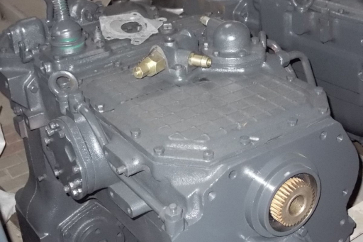 У гидромеханической коробки переключения передач имеется несколько диапазонов: рабочий, транспортный, замедленный и задний ход. В каждом диапазоне имеются 4 передачи, переключение которых происходит без разрыва потока мощности. Диапазоны переключаются при полной остановке машины.