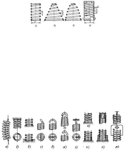 Широкое распространение получили винтовые цилиндрические пружины (рис. 6.5, а), как самые простые в изготовлении. К винтовым