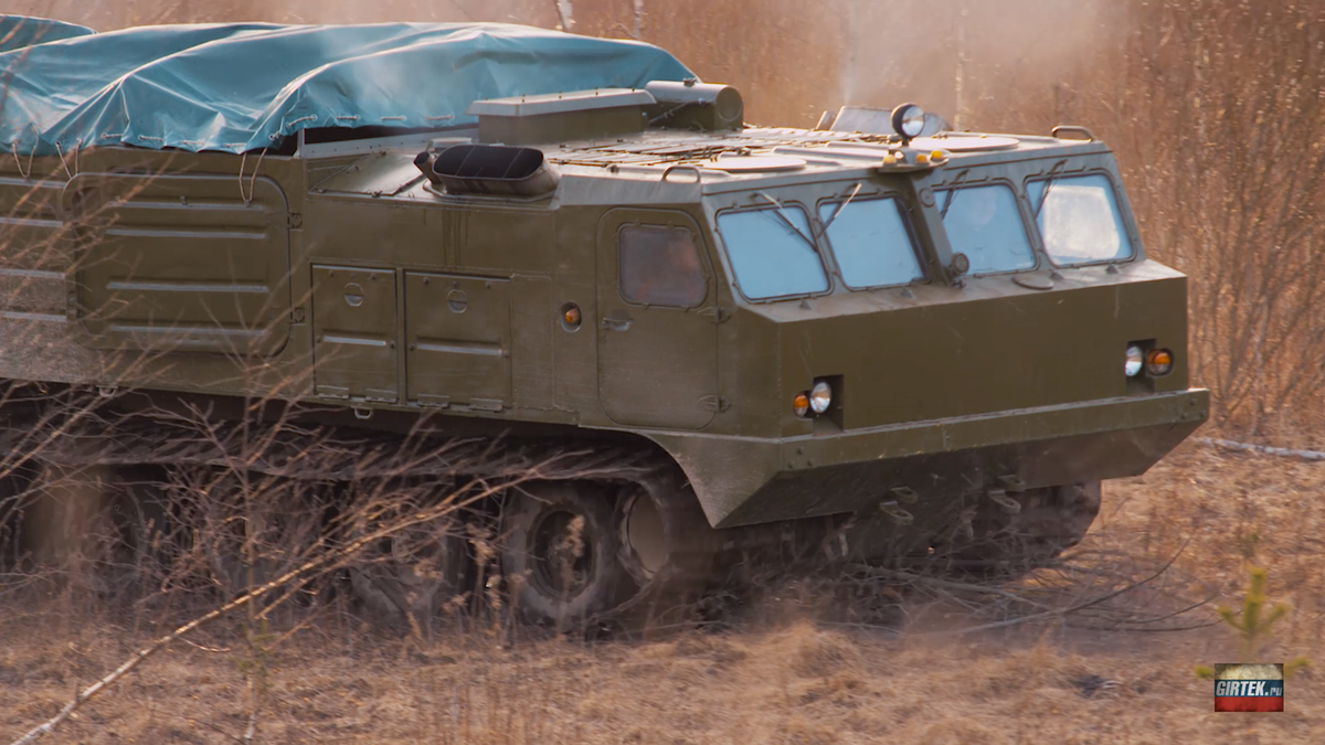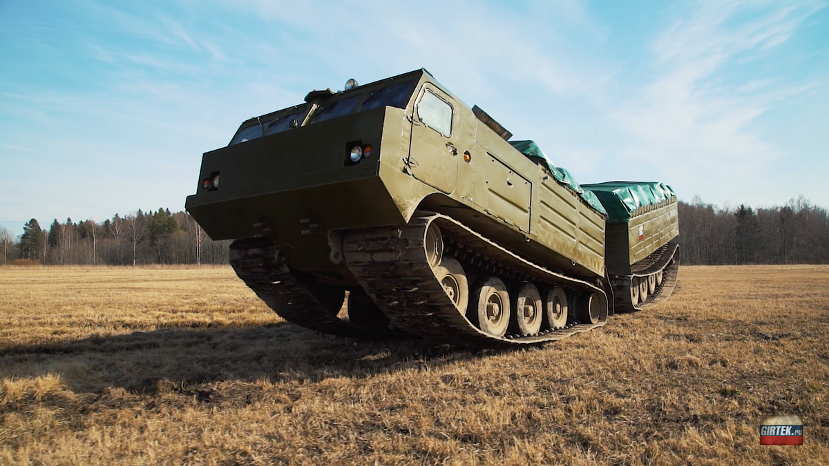 Транспортер весом 21,5 тонны предназначен для перевозки грузов весом до 10 тонн. Комплектуется 12-цилиндровым V-образным двигателем ЧТЗ В46-5С мощностью 710 лошадиных сил и 4-ступенчатой полуавтоматической коробкой передач.