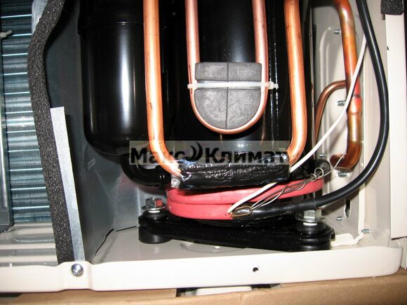 - Обязательно нагреватель картера компрессора — решает проблему пуска холодного компрессора, нагревая масло в его картере, препятствуя повреждению компрессора;