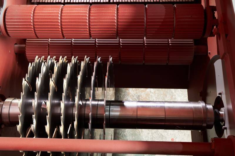 Режущие валы могут иметь от восьми до двенадцати режущих дисков, в зависимости от требуемой производительности и размера частиц. Размер измельчаемого материала зависит от количества и ширины режущих ножей.